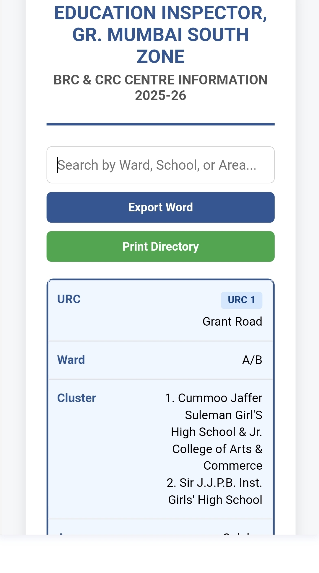 शिक्षण निरीक्षक (दक्षिण विभाग), ई व्हिटा एनेक्स बिल्डिंग, मुंबई - ४०००१२